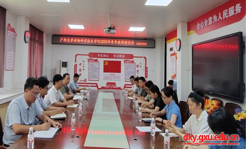 为进一步加强青年教师队伍建设,了解2025年新入职青年教师对学校、学院的意见和建议,提升青年教师教学科研业务能力。9月9日,广西大学动物科学技术学院在学院302会议室组织召开青年教师座谈会。动物科学技术学院党委书记韦小强,院长陆阳清,学院各基层教学组织教师代表、学院本科生教学办公室人员、2025年新入职青年教师等人参加座谈会,会议由蒋钦杨副院长主持。
