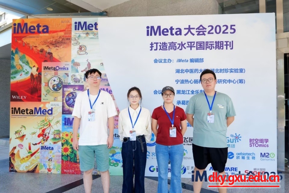 8月23至25日,广西大学动物科学技术学院博士研究生肖杨、王家乐和杨兴珍参加了在湖北武汉举办的2025年iMeta大会。本次大会由iMeta编辑部、湖北中医药大学(湖北时珍实验室)、宁波热心肠科技传播研究中心(筹)联合主办,旨在追踪学科前沿,促进科学发展,引领国际合作,打造高水平国际期刊。