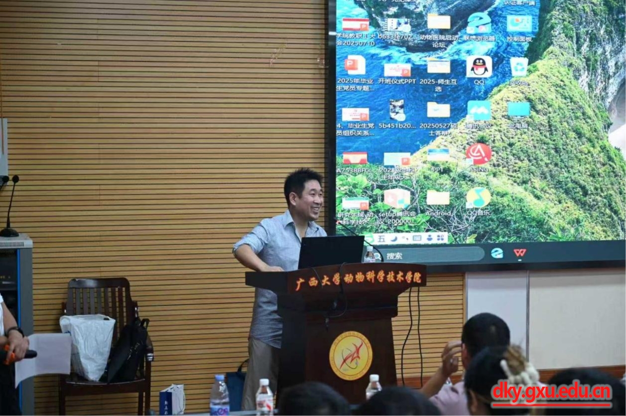 陈义洲随后作《教学动物医院的"三重奏":人才、学科与服务的华农实践》专题报告,回顾华南农业大学教学动物医院发展历程,分享学科建设成果,探讨临床兽医教师在教学、科研与社会服务间的平衡之道。