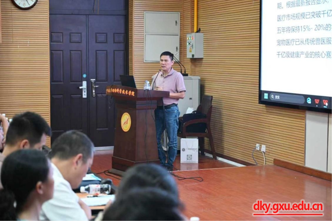 论坛特邀中国农业大学动物医学院临床医学系教授、新瑞鹏宠物医疗集团专家委员会主任林德贵,华南农业大学动物医院常务副院长、高级兽医师陈义洲,华中农业大学临床兽医系副主任、动物医院院长邱昌伟副教授,广西大学动物科学技术学院副教授曾芸、助理教授韦懿仙等专家进行专题报告。论坛由动物科学技术学院副院长何家康主持,吸引学院众多师生参与。