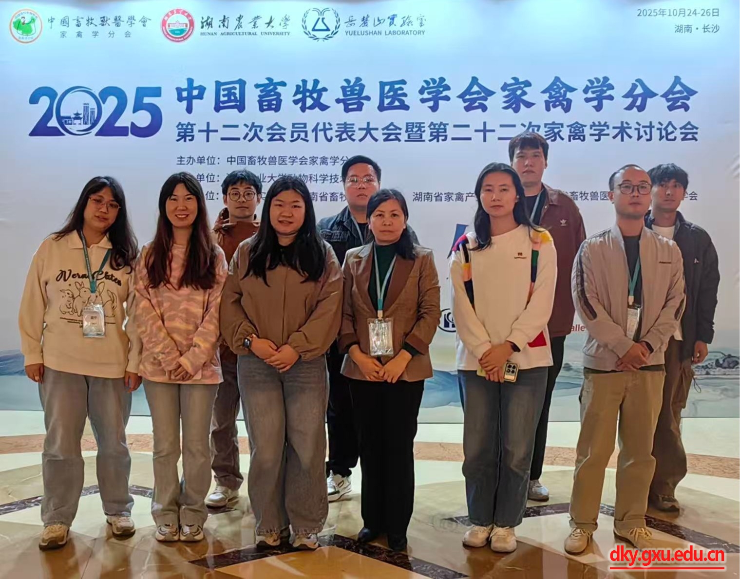 动物科学技术学院杨秀荣教授带领9名研究生及团队成员全程参与会议,围绕家禽遗传育种、健康养殖、营养调控、疫病防控及产业链协同等议题,与参会专家进行了广泛而深入的交流。团队不仅积极听取大会报告,还就家禽产业高质量发展路径及技术创新方向展开研讨,为推动广西家禽业的科技进步与产业升级贡献智慧。
