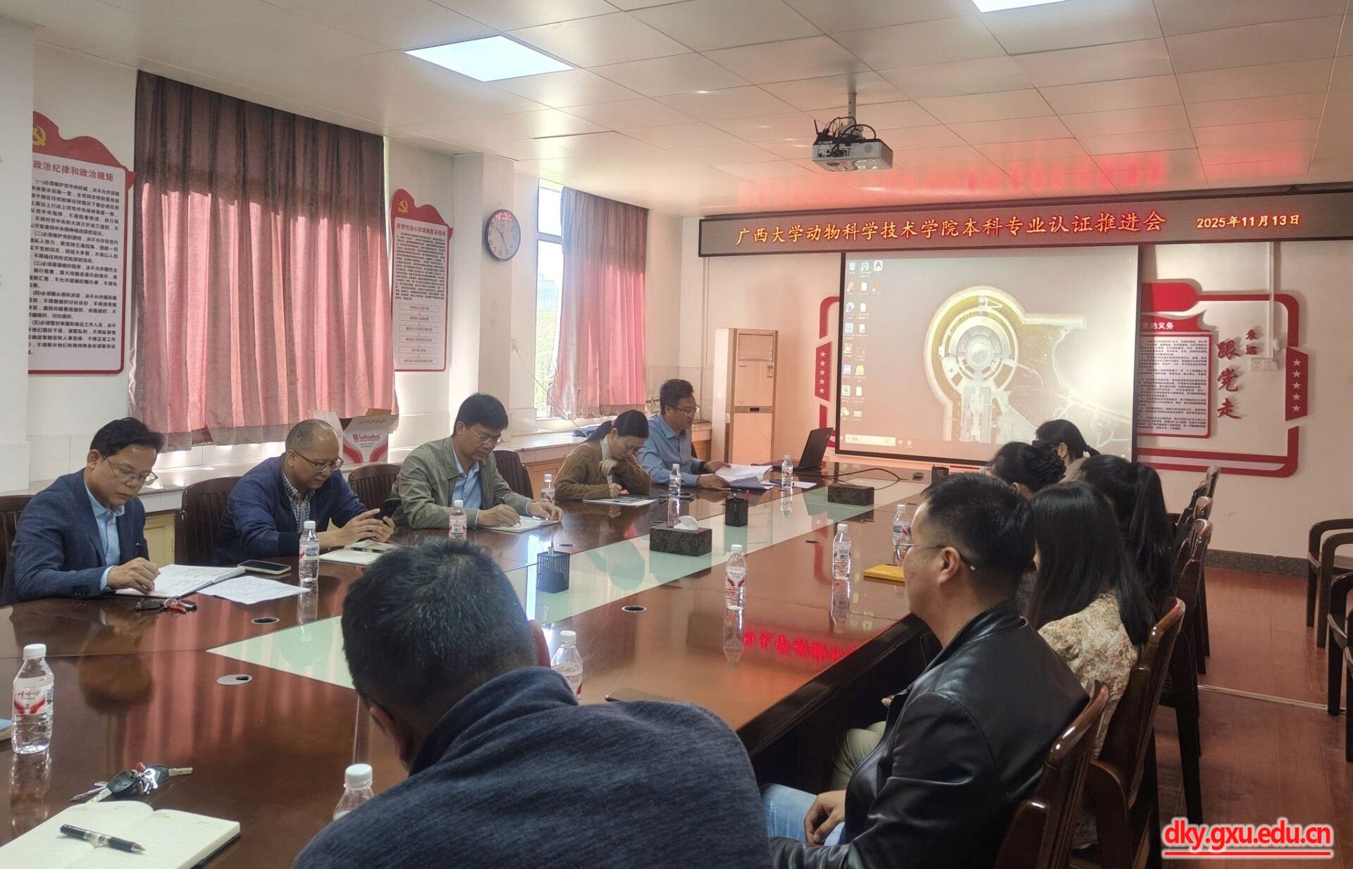 为积极响应国家高等教育质量提升号召,深入推进农学门类专业三级认证工作,11月13日上午,广西大学动物科学技术学院召开本科专业认证工作推进会。动物科学技术学院党委书记韦小强,党委副书记、纪委书记杨雪,副院长何家康、韦祖樟、蒋钦杨等领导出席会议,学院专业认证工作组人员参加。会议由蒋钦杨副院长主持。