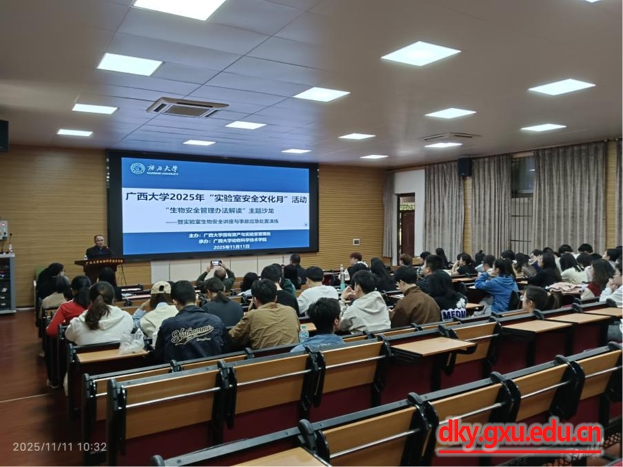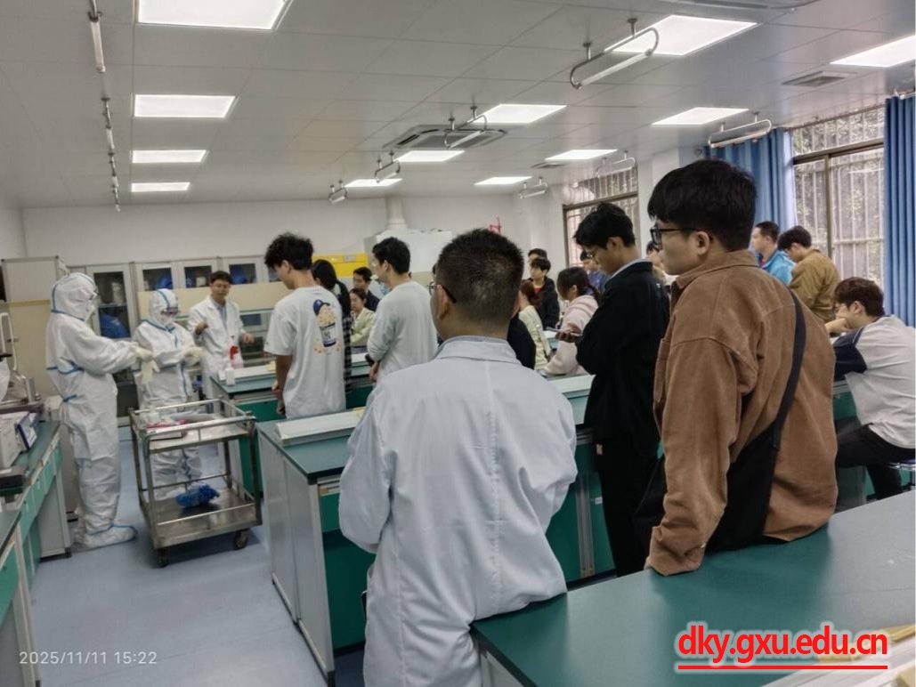 为深入推进校园安全文化建设,切实提升师生生物安全意识与应急处置能力,11月11日,广西大学动物科学技术学院以“安全文化月活动”为契机,特邀生物安全领域资深培训师屈文军老师,为师生开展生物安全专题培训和二级生物安全实验室感染性物质溢洒事件应急演练。全校相关学科教师、学生共计200余人参与培训和演练。