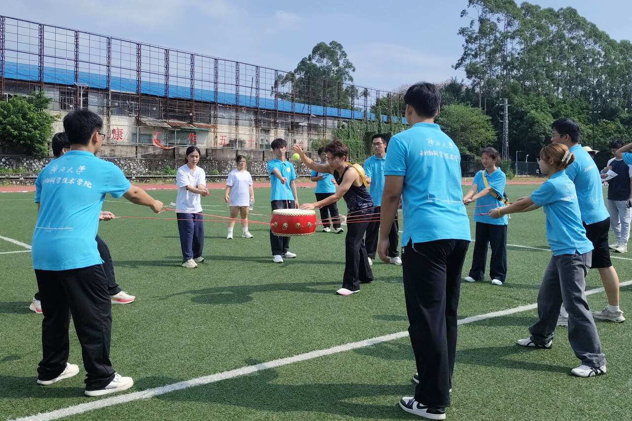 2025年4月23日,广西大学北校园体育场内活力满溢,动物科学技术学院研究生会以“强化内部协作、凝聚团队共识”为目标,在此开展内部击鼓颠球团建活动。研究生骨干分为两支队伍,在趣味互动中深化彼此默契,筑牢团队内部凝聚力。